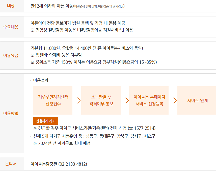 2. 아픈아이 전담 아이돌보미 운영