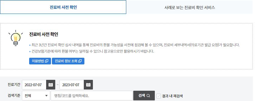 | 진료비 사전확인 홈페이지 바로가기 |