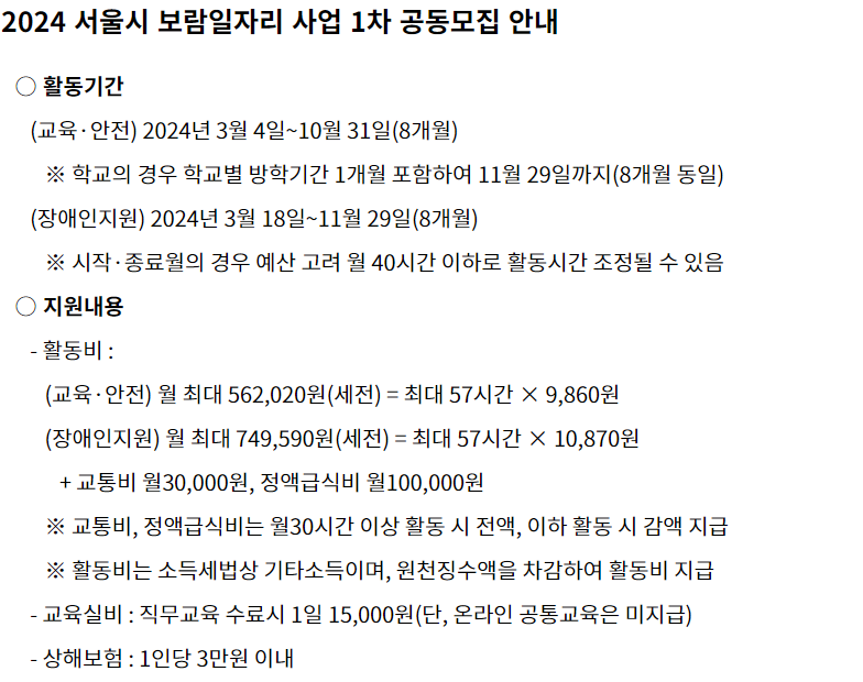 - 올해 보람일자리는 1월부터 3월까지 분야별로 순차적으로 모집이 진행.