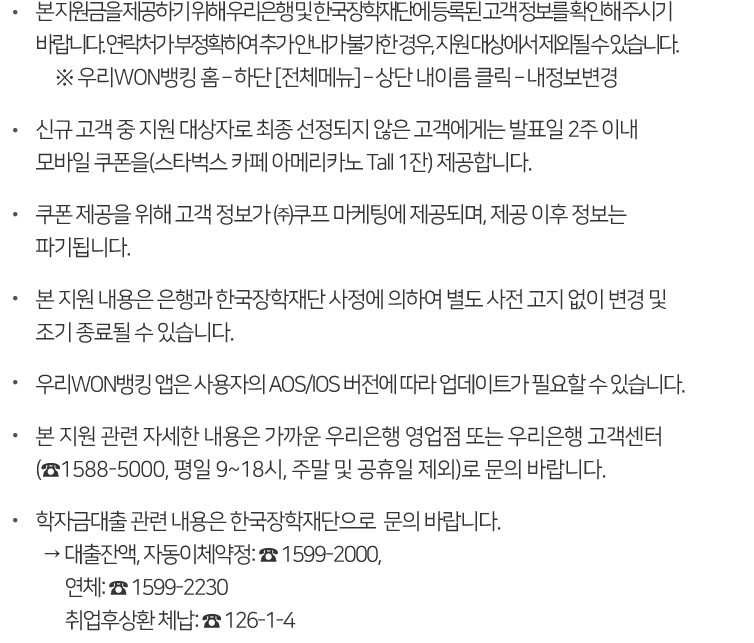 : 우리 WON뱅킹 통한 신청 접수&한국장학재단 홈페이지에서 본인 명의 우리은행 계좌를 학자금 대출 원리금 상환 이체 약정 계좌로 등록