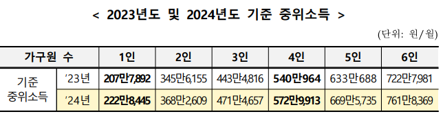 - 2024년 1인가구기준 7.25%로 인상, 4인가구 기준으로는 올해 대비 6.09% 인상,